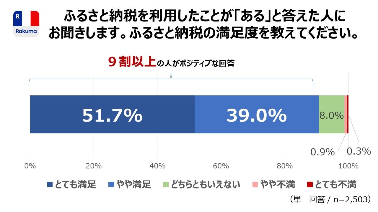 ●ふるさと納税の利用者の満足度は9割以上がポジティブ