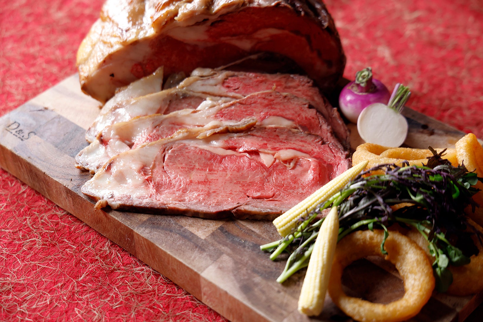 ローストビーフ/有頭海老フライ/骨付きフランクのグリル/藁焼きカツオのタタキ