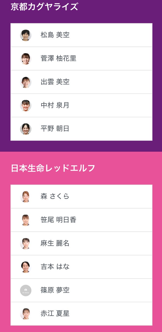 ノジマTリーグ 2024-2025シーズン 公式戦 11月29日開催 京都カグヤライズ vs 日本生命レッドエルフのベンチ入り選手を発表いたします。