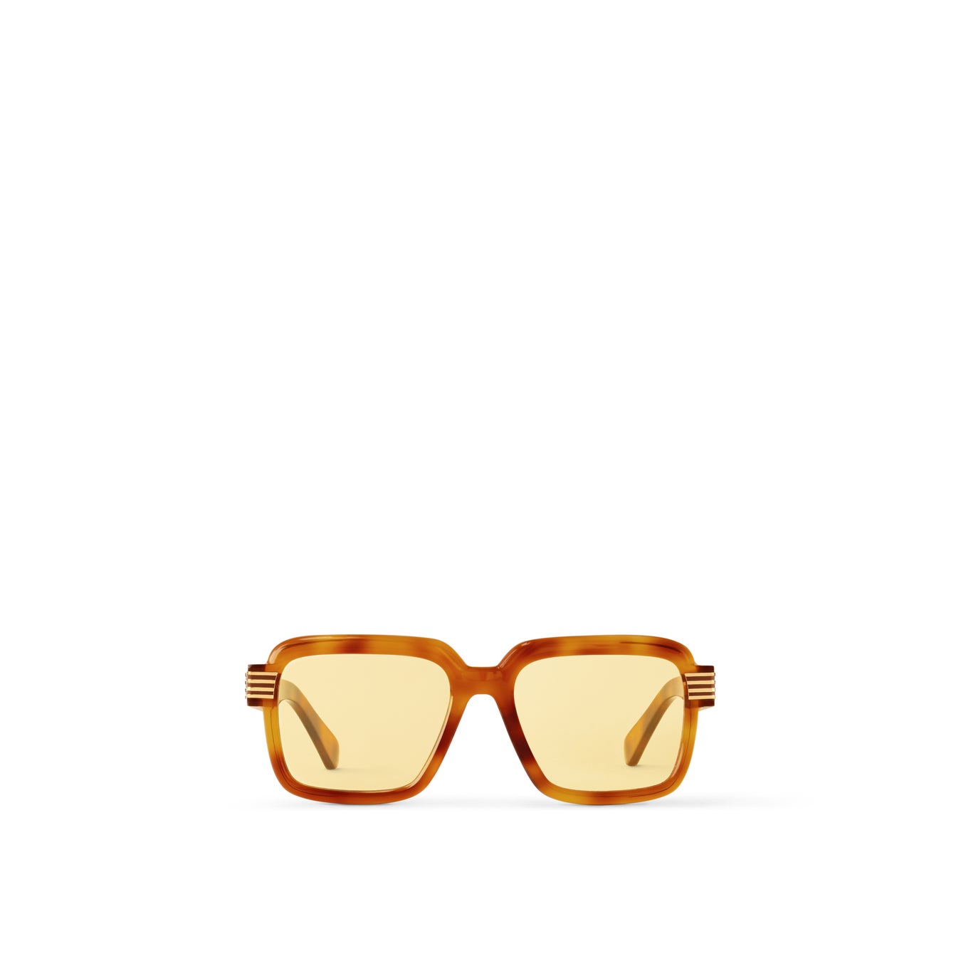 ルイ·ヴィトンは、2025プレフォール メンズ·コレクションより、光沢感のあるアセテートフレームにあしらった4本のゴールドカラーのメタルストライプがポイントの新作メンズアイウェアを発売しました。