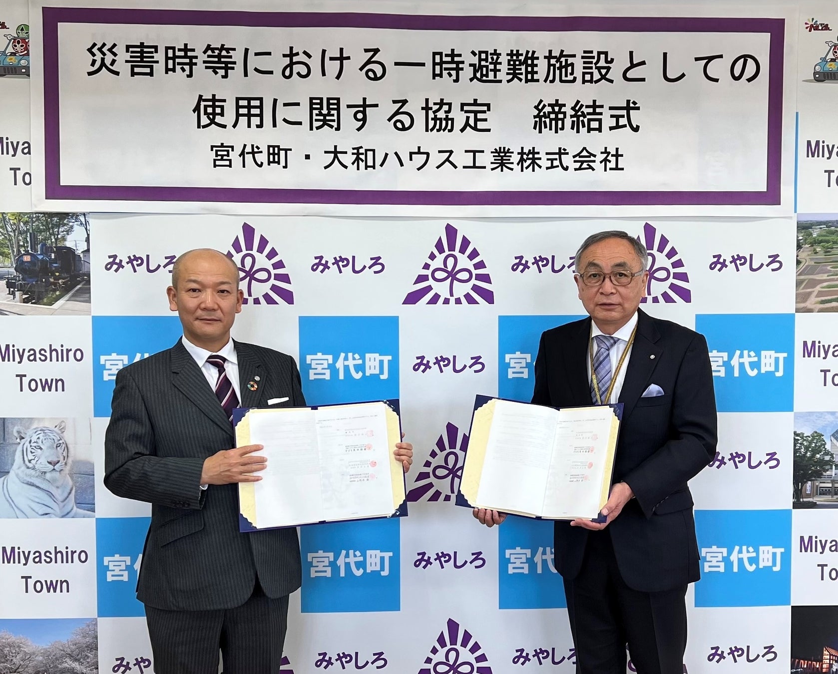 埼玉県宮代町(町長:新井康之、以下「宮代町」)と大和ハウス工業株式会社(本社:大阪市、社長:芳井敬一、以下「大和ハウス工業」)は、2023年1月17日、「災害時等における一時避難施設としての使用に関する協定書」を締結しました。