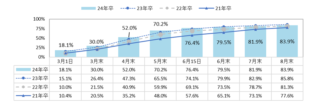 2024年卒業予定の大学生・大学院生の8月末時点での内々定率は83.9%【図1、2】