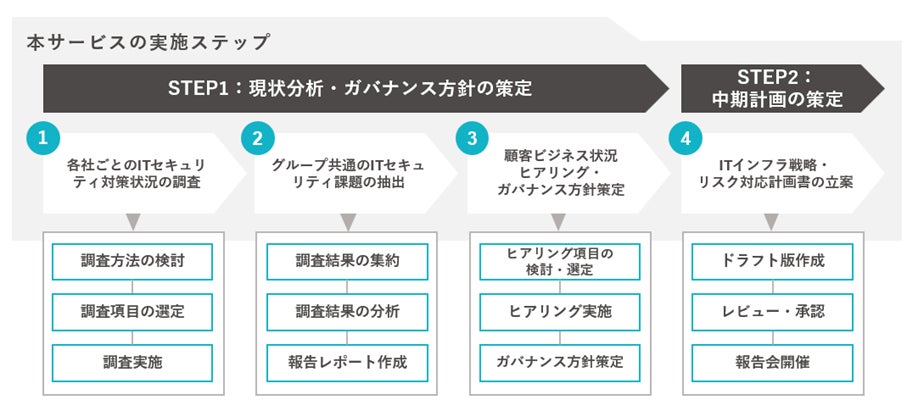 「ITガバナンス計画・実行支援サービス」は、他社では提供が難しい海外拠点の現地調査にも対応しており(英語・中国語に対応)、各拠点の現状に合わせて具体的かつ実効性のあるITガバナンス方針を立案します。
