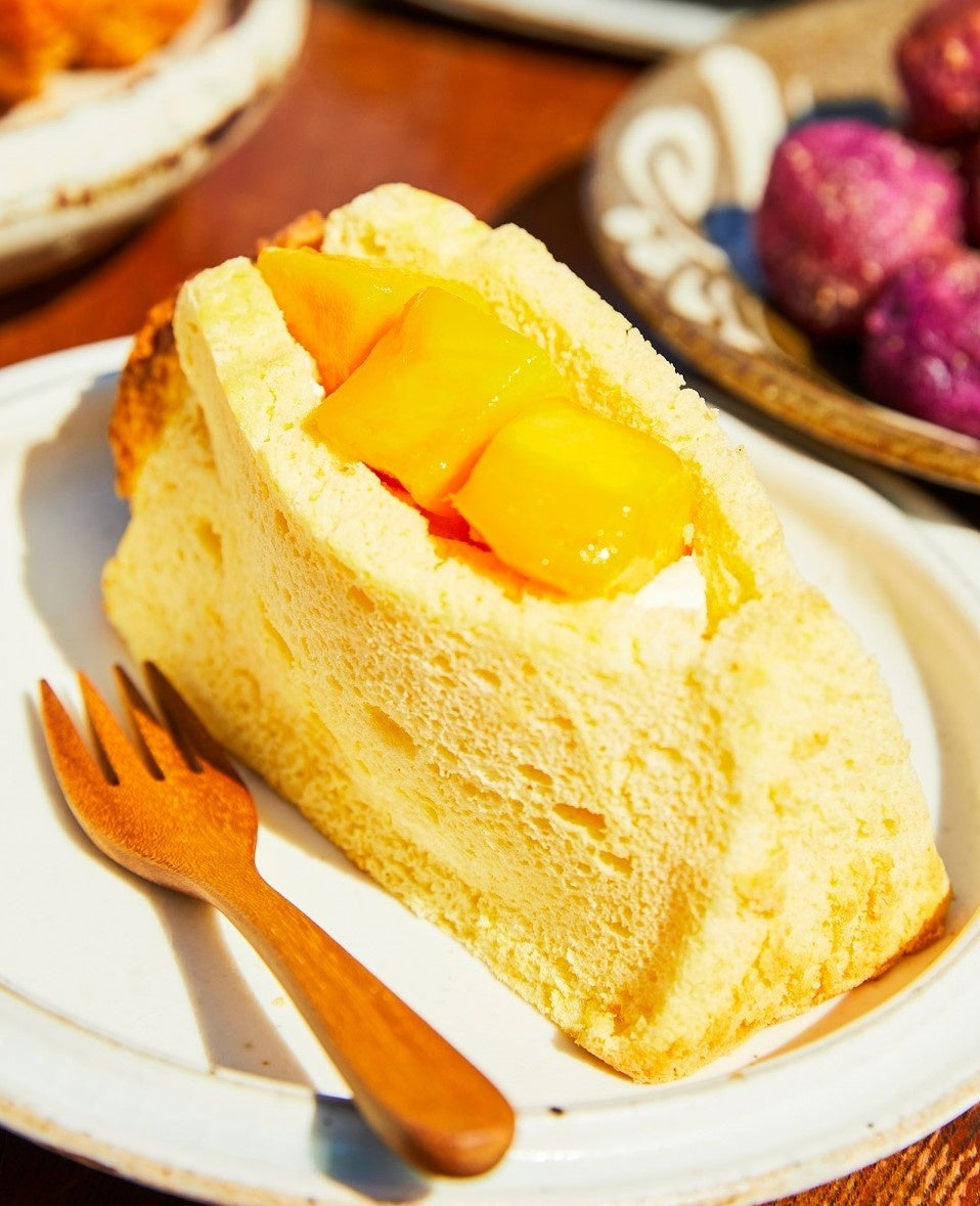 マンゴークリームがたっぷり入ったシフォンケーキ。