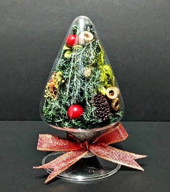 クリスマスシーズンのお部屋を華やかに演出するアーティフィシャルフラワーやリボンで作るツリー型のウォールデコレーションです。ドライリーフの土台にリボンを飾り付け、クリスマスにふさわしいツリースワッグに仕上げましょう。
