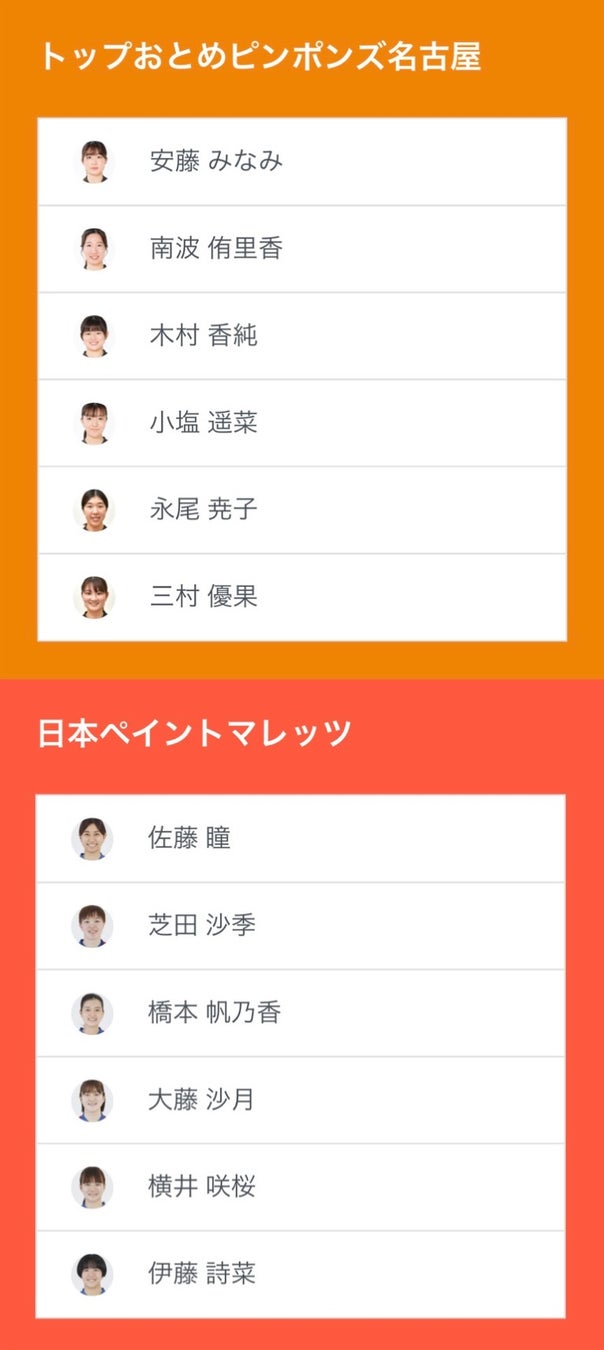 ノジマTリーグ 2024-2025シーズン 公式戦 11月30日開催 トップおとめピンポンズ名古屋 vs 日本ペイントマレッツ ベンチ入り選手発表