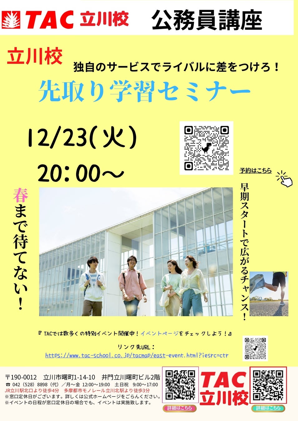 【TAC公務員】「立川校独自のサービスでライバルに差をつけろ!先取り学習セミナー」を12/23(火)にオンラインで開催!