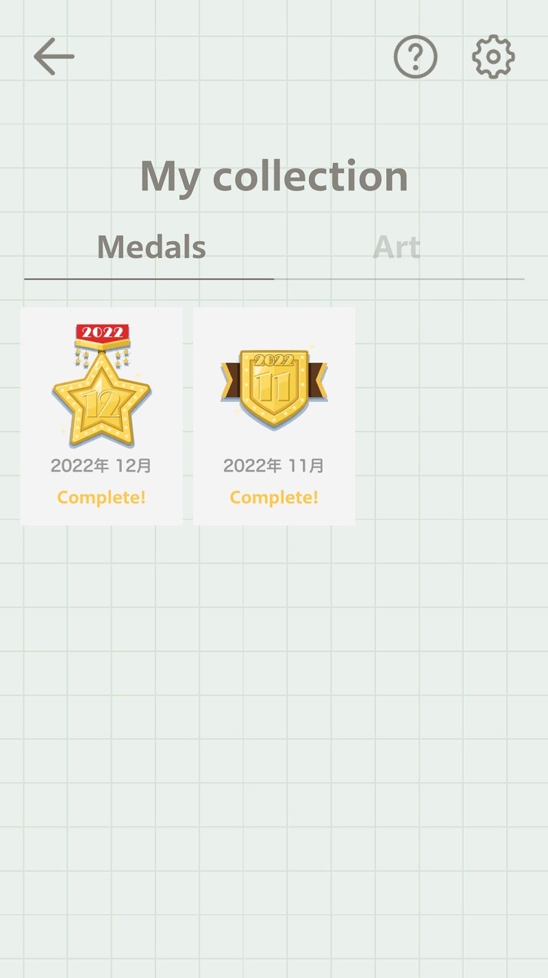 ・クリアした画像や獲得したメダルがコレクションされ振返れる