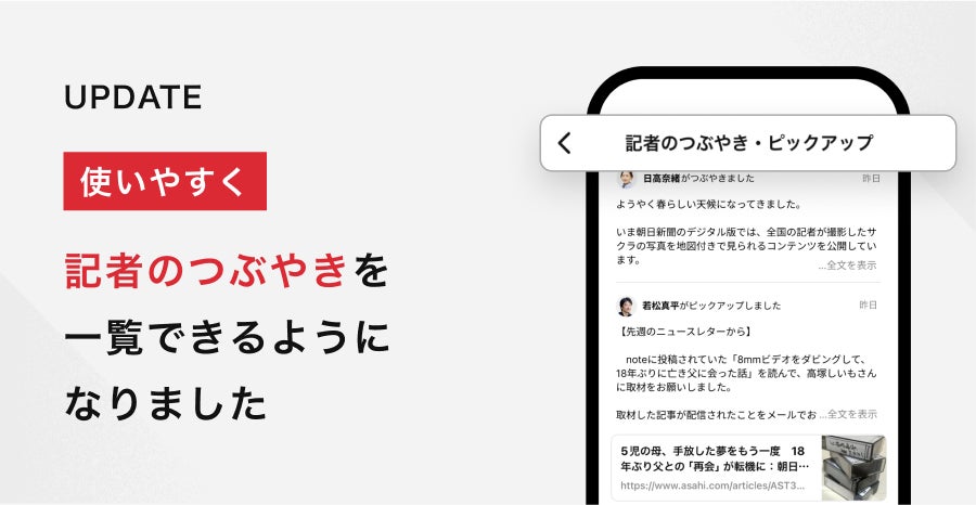 株式会社朝日新聞社(代表取締役社長:角田克)が運営する朝日新聞のデジタル版(https://www.asahi.com)は、2025年5月15日にアプリをアップデートし、記者による日々の発信(つぶやき)をタイムライン形式で一覧できる新機能「記者のつぶやき一覧」をリリースしました。