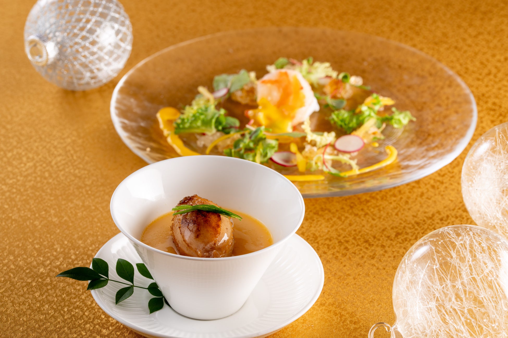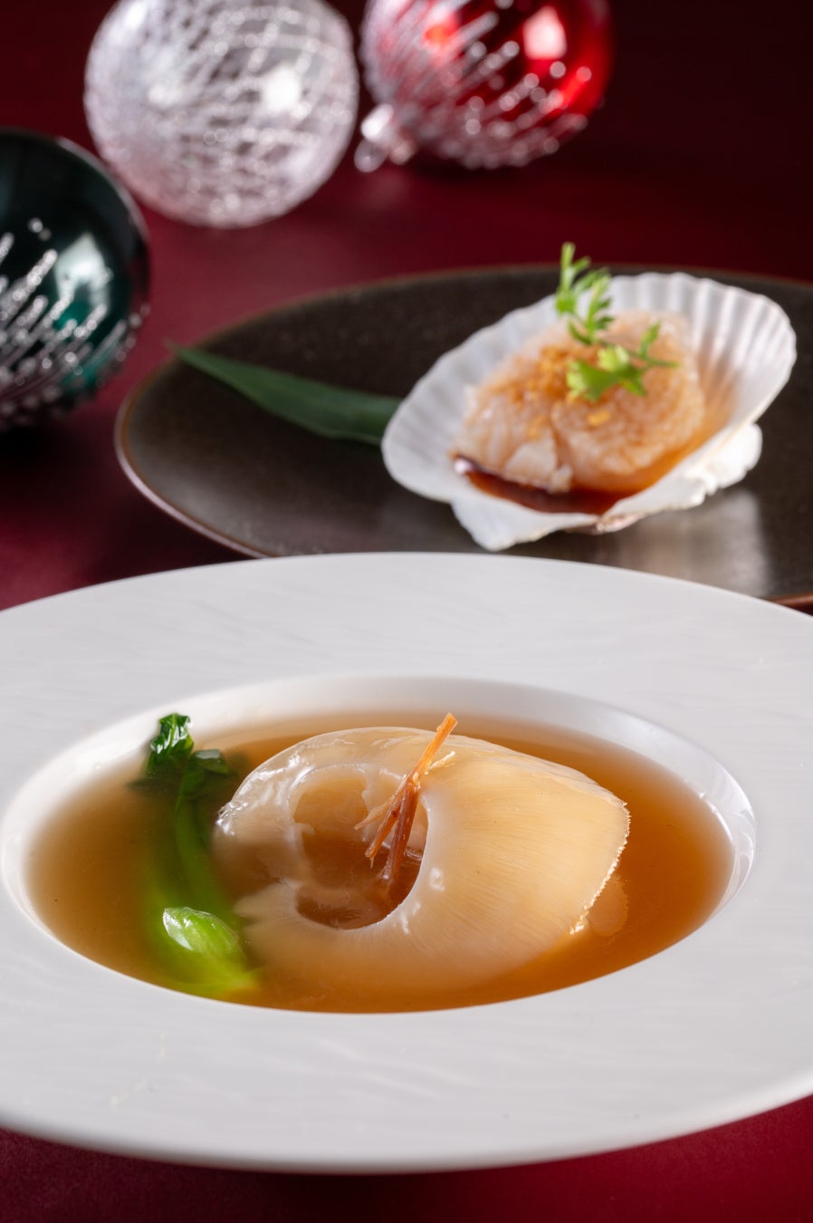 同店のシグニチャーメニューでもある「ふかひれ」料理や「蝦夷鮑」「蟹」など、厳選された食材を使ったクリスマスにふさわしいコースをご堪能いただけます。