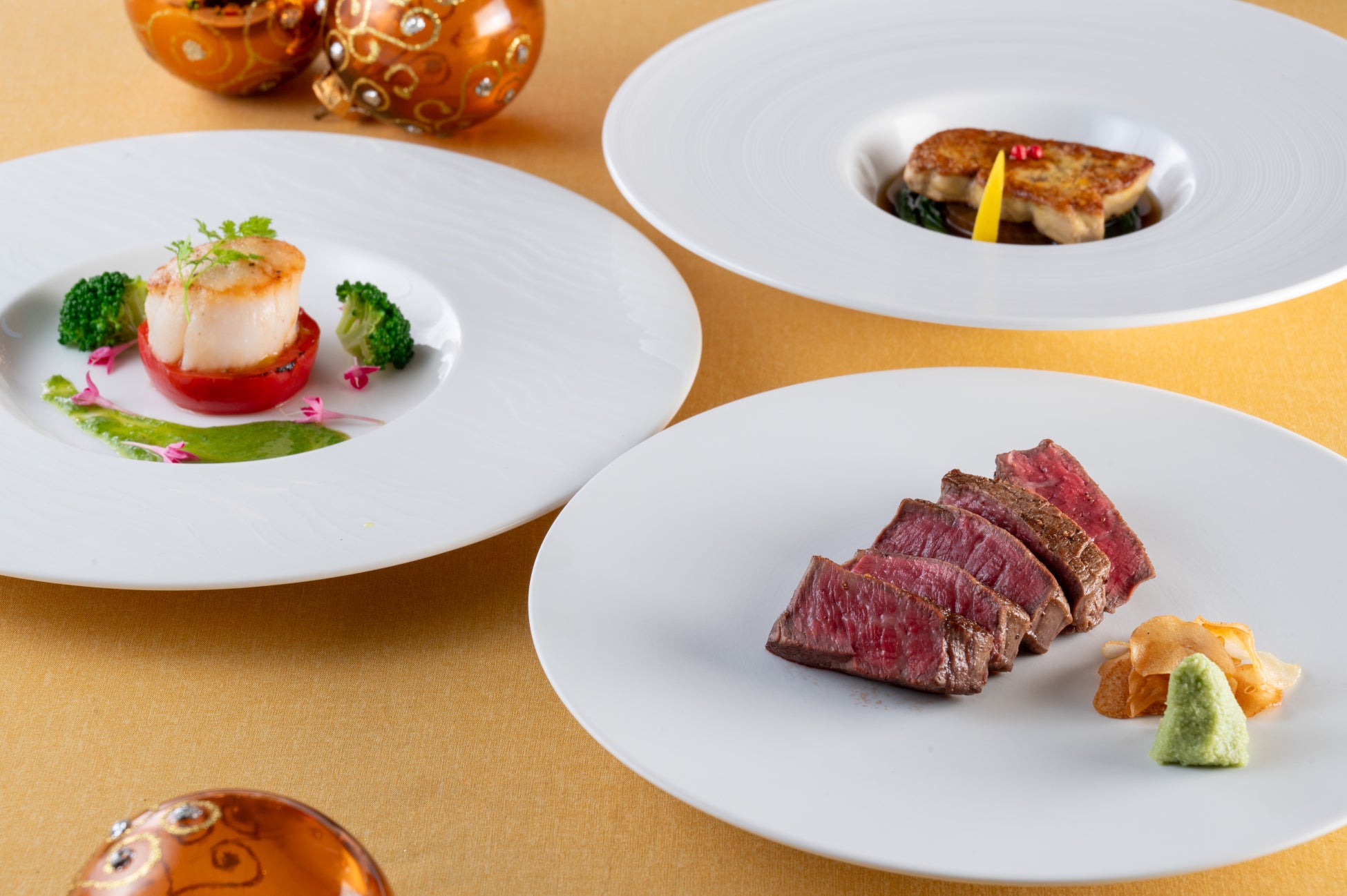 『鉄板焼 みや美』では、「国産牛フィレ」と「フォワグラ」を愉しめるランチコースと「黒毛和牛」や「米沢牛」をメインに、「フォワグラ」や「イセエビ」などの上質な食材を使用したディナーコース3コースが登場します。
