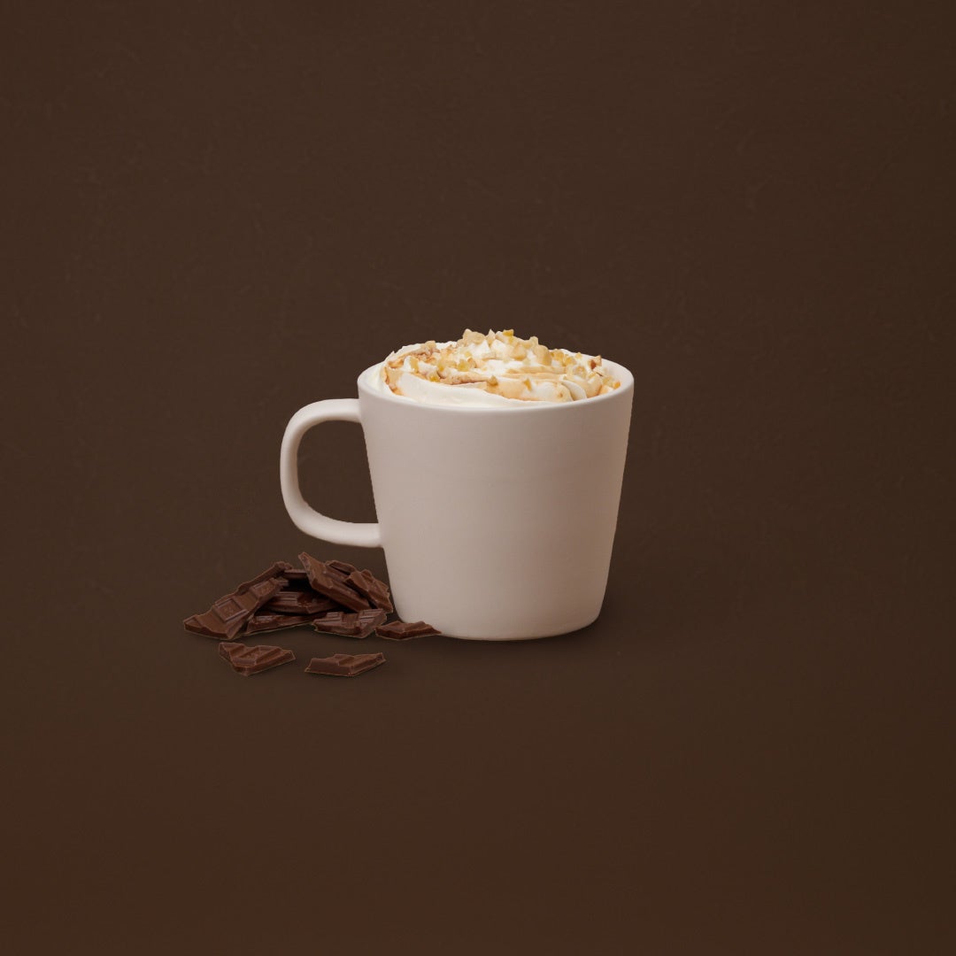 ブロンドチョコレートとナッツの香ばしい味わいを楽しめる、寒い冬にぴったりのドリンクです。