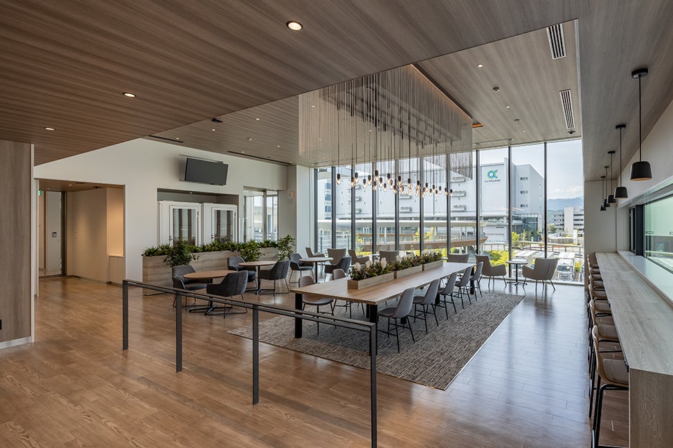 共用棟「リング」には、従業員だけではなく地域住民も利用できる、カフェやコンビニ、マルチコートが併設されています。