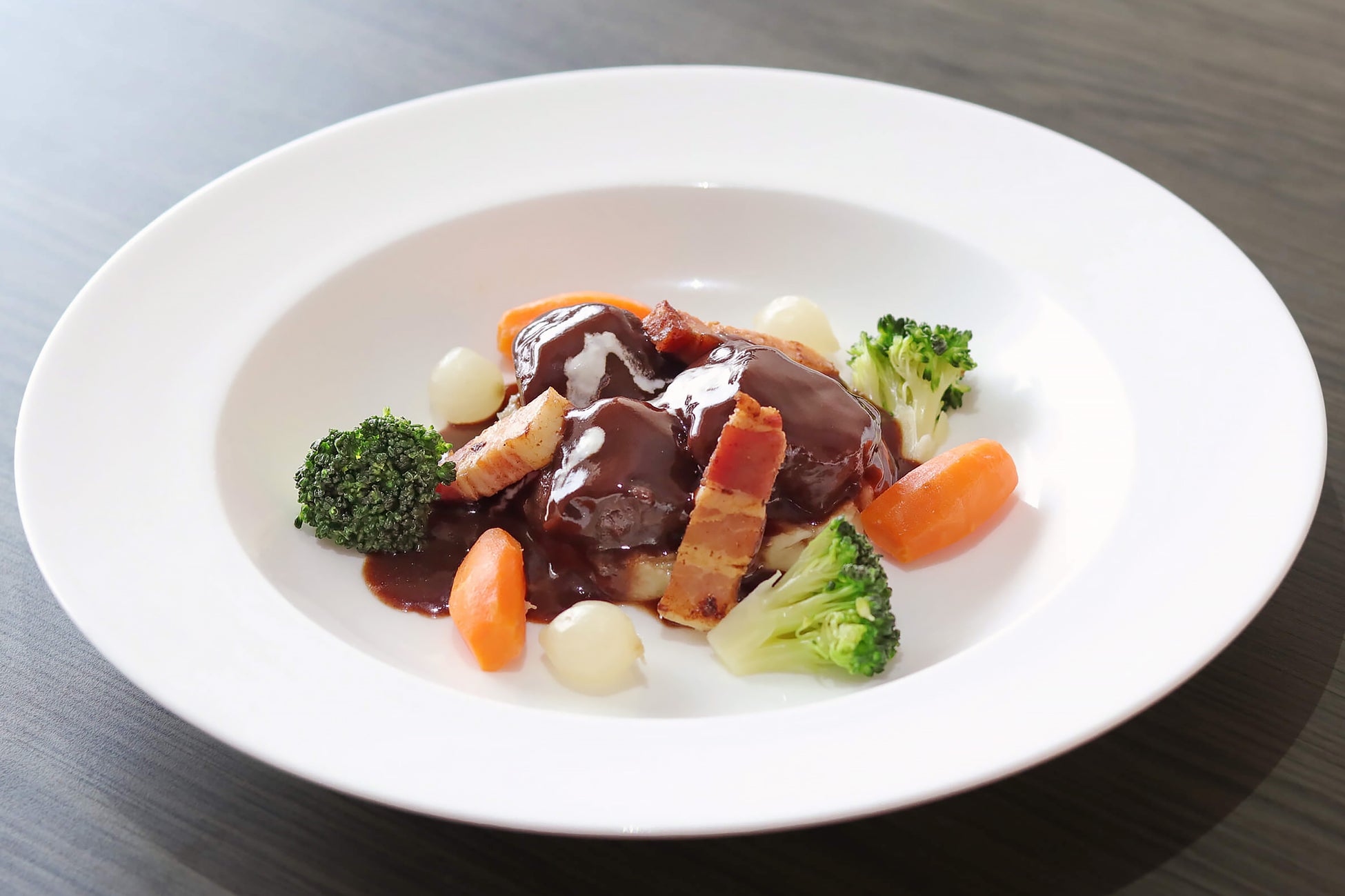 柔らかく煮込まれた群馬県産ニホンジカの赤ワイン煮は、芳醇な香りと奥深い味わいが特長で、リヨン風のやさしい酸味がジビエ特有の風味と絶妙に調和します。地元食材の魅力を最大限に引き出した一皿として、上州ジビエの新たな味覚体験を是非お楽しみください。