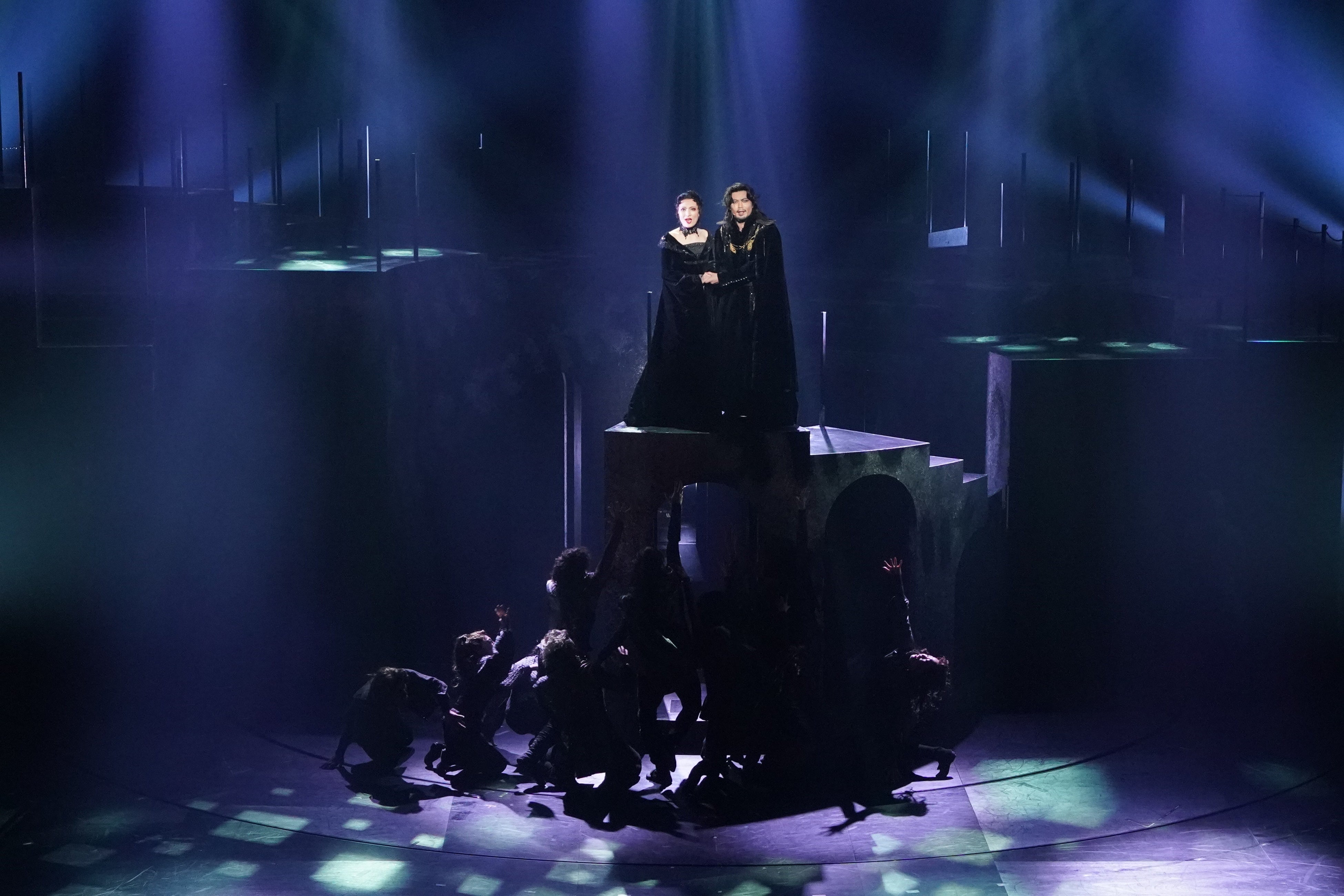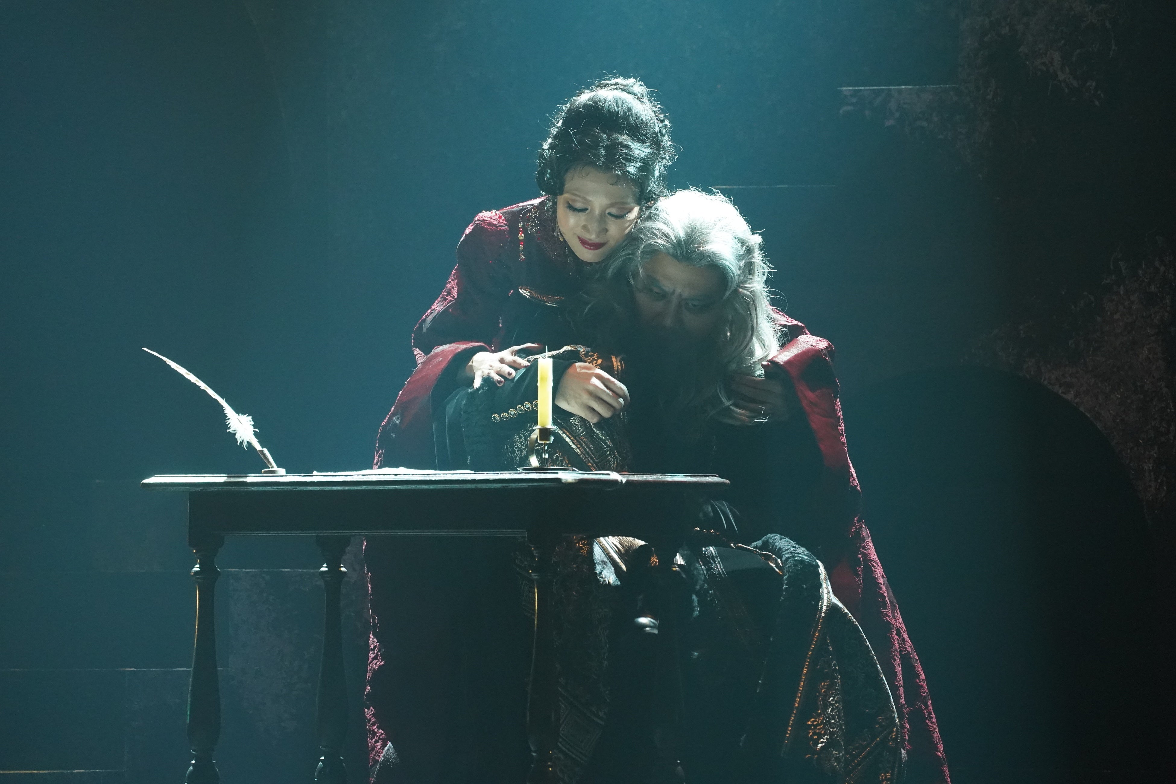 破綻した王政につけ入り、権力を掌握しようとするのはシャルル6世の叔父ブルゴーニュ公フィリップ(石井一孝)とその息子ジャン(中河内雅貴)。彼らと対立するシャルル6世の弟オルレアン公ルイ(上川一哉)は、イザボーと不貞の関係となり、彼女が権力を獲得するために助力していく。