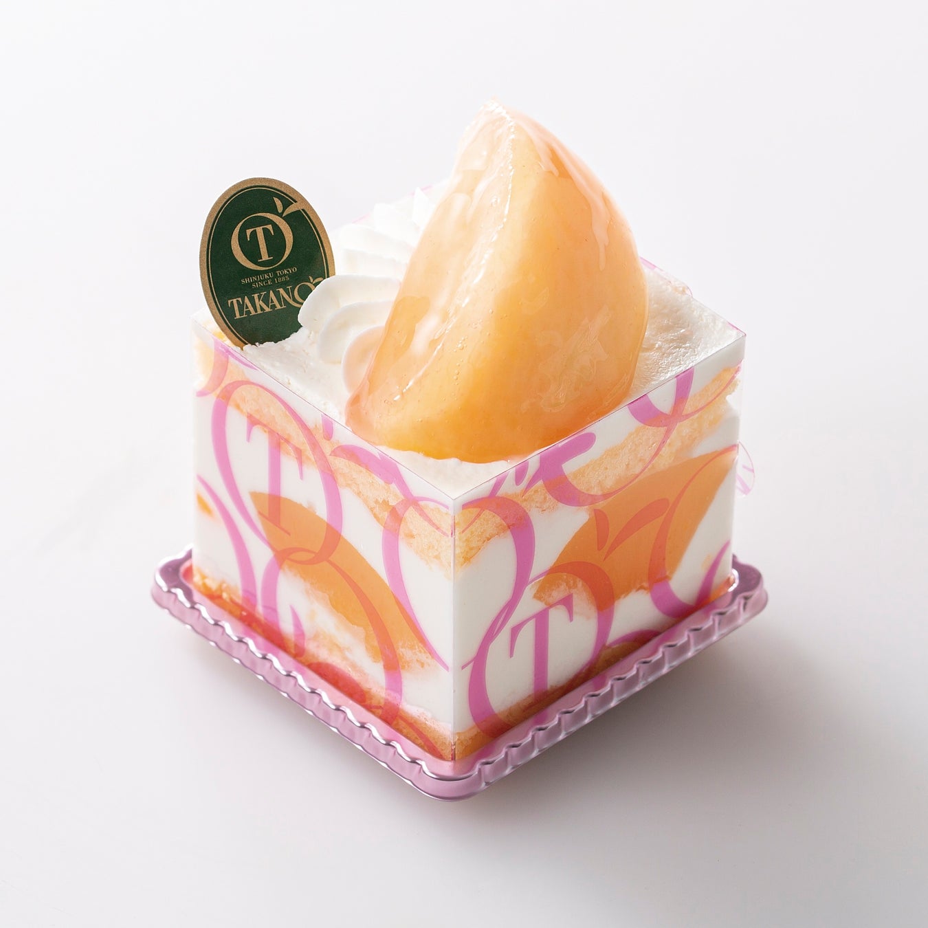 桃風味のスポンジと桃で仕立てた果物専門店の季節限定ショートケーキ。