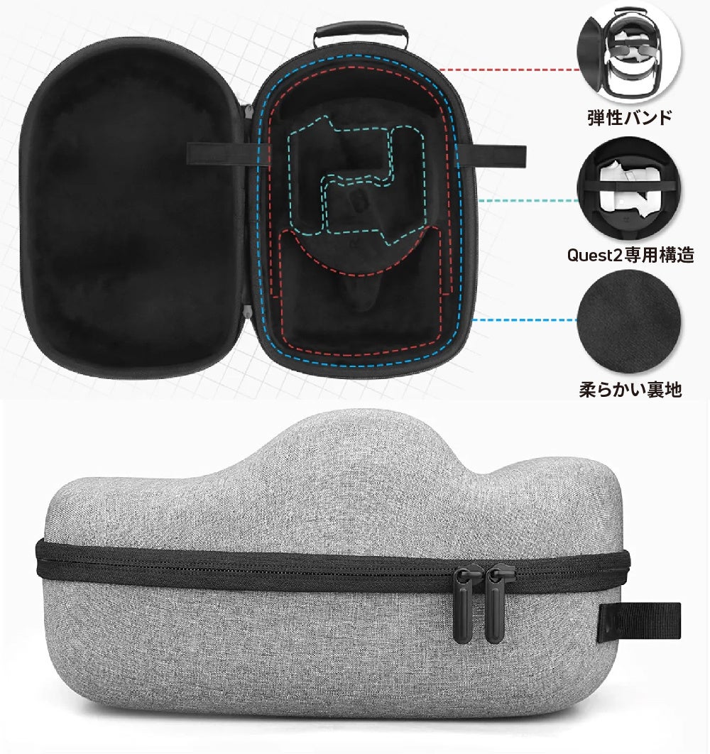 VR機器を傷つけることなく、衝撃から包み込むように守る設計です。