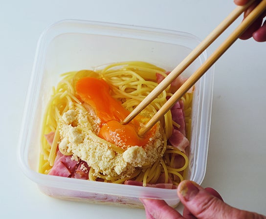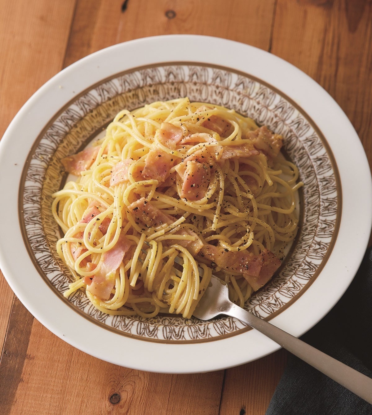 レンジだけで、本格カルボナーラができちゃう!食べさせた人にも、レンジだけで作ったとはわからないおいしさです。