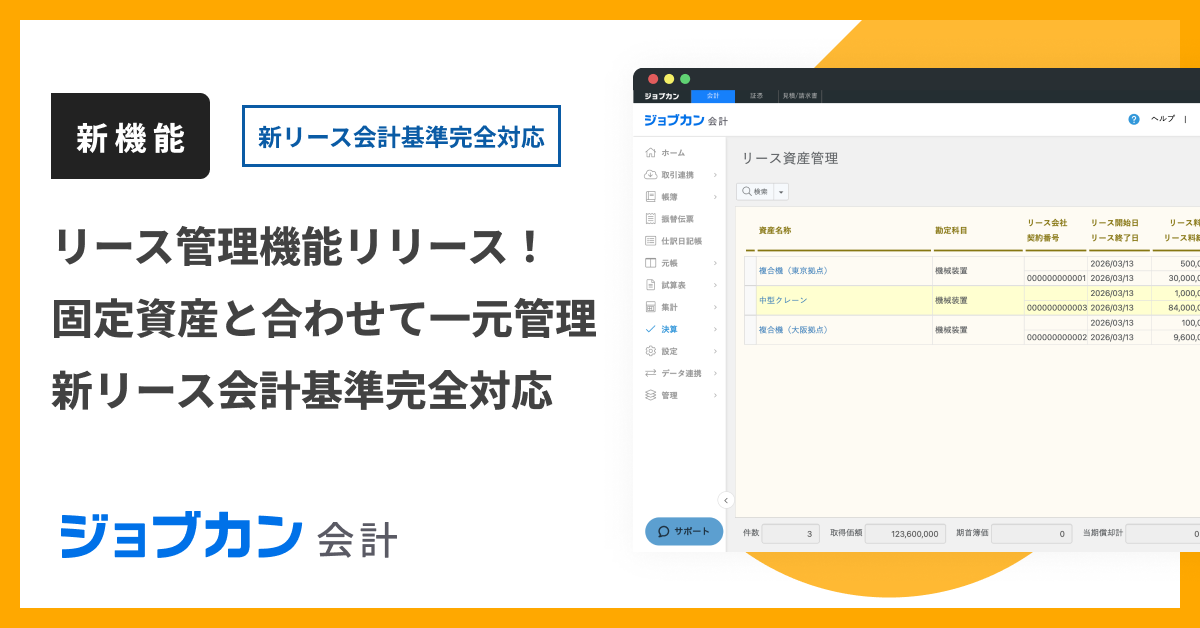 『ジョブカン会計』、新リース会計基準に対応した「リース管理機能」を提供開始