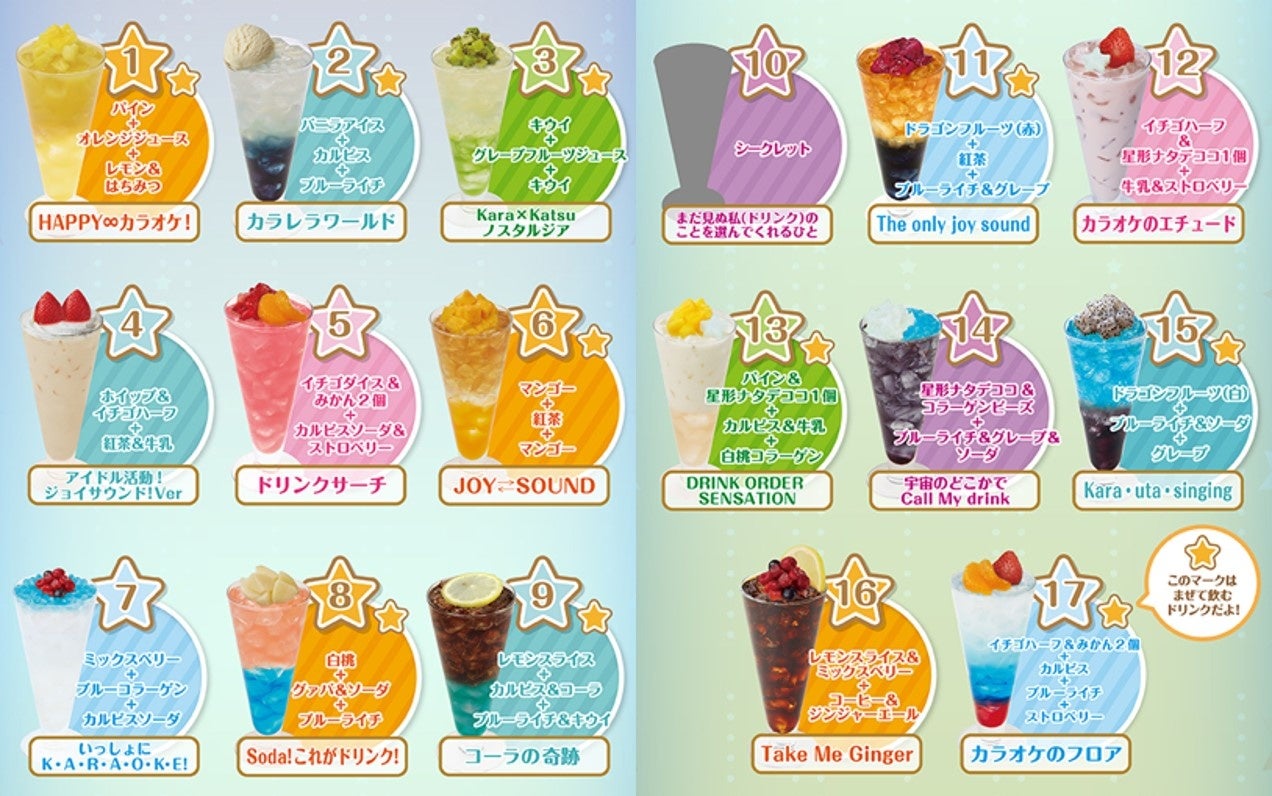 「アイカツ!シリーズ」の楽曲をイメージしたコラボドリンク17種[各750円(税込)ノンアルコール]をご用意しました。