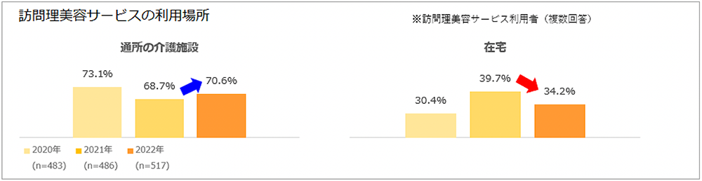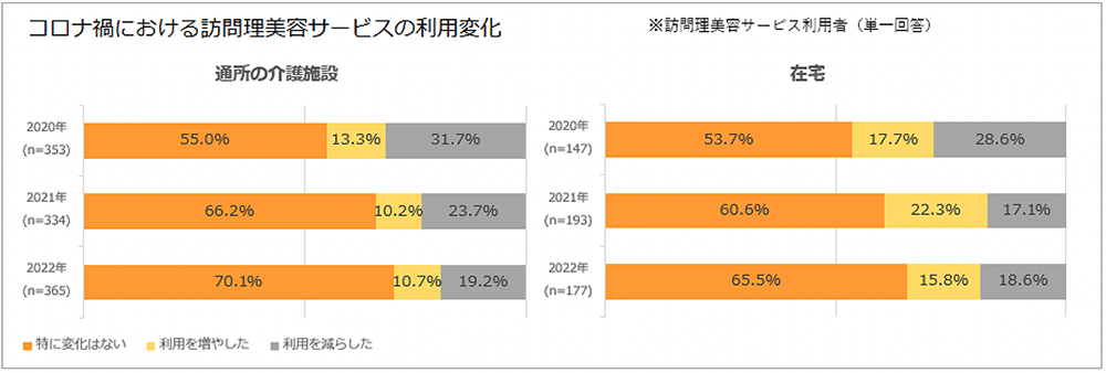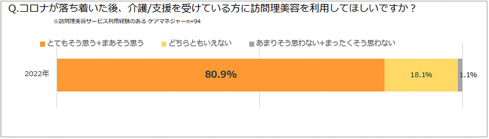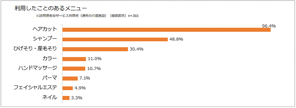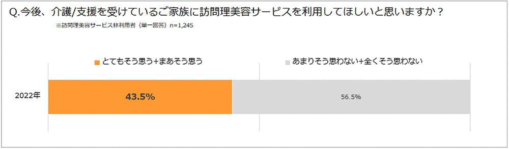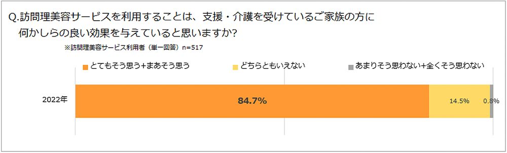 ※ 自宅や介護・福祉施設に理美容師が訪問し、ヘアカットなどの理美容メニューを実施するサービス。要支援者・要介護者の認定を受けた方など、外出が困難な方が対象です。調査は在宅の要支援者・要介護者の家族、およびケアマネジャーが回答。