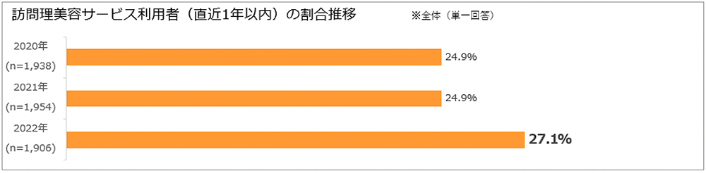 直近1年以内の訪問理美容サービス利用率が上昇し、27.1%へ。認知度・満足度が高まり、アフターコロナではさらなる利用増の兆し