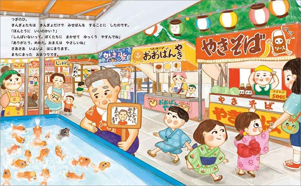 明日はお祭りの日! だけど風邪をひいてしまった金魚すくいの店主さん…。でめきんのめめたたちは、店主のおじさんにかわって、店番をすることに! めめたたちは、金魚すくいにやってきたお客さんたちを盛り上げますが…? お祭りの楽しさが伝わってくる夏絵本!