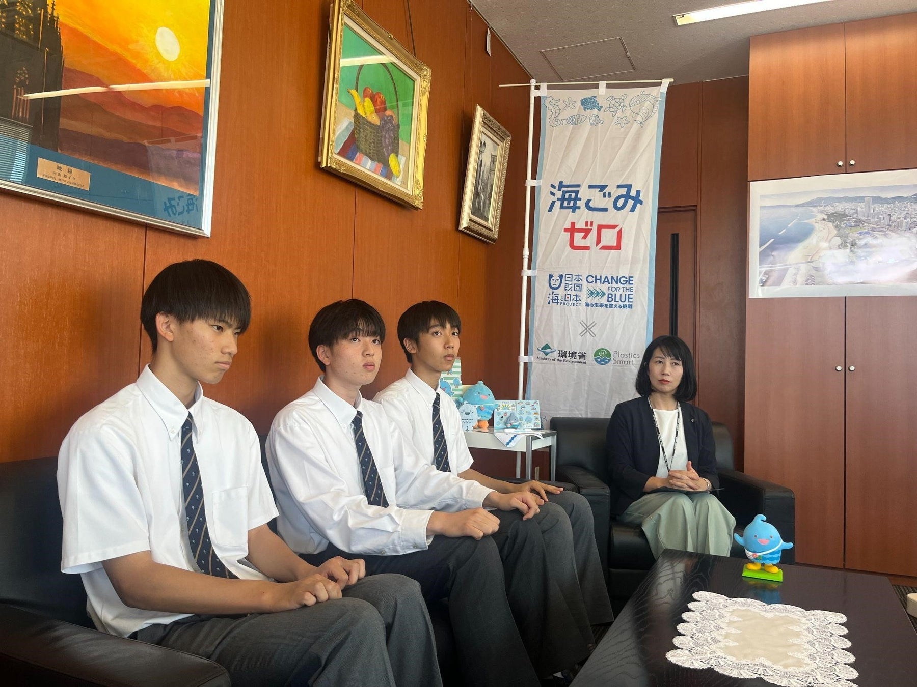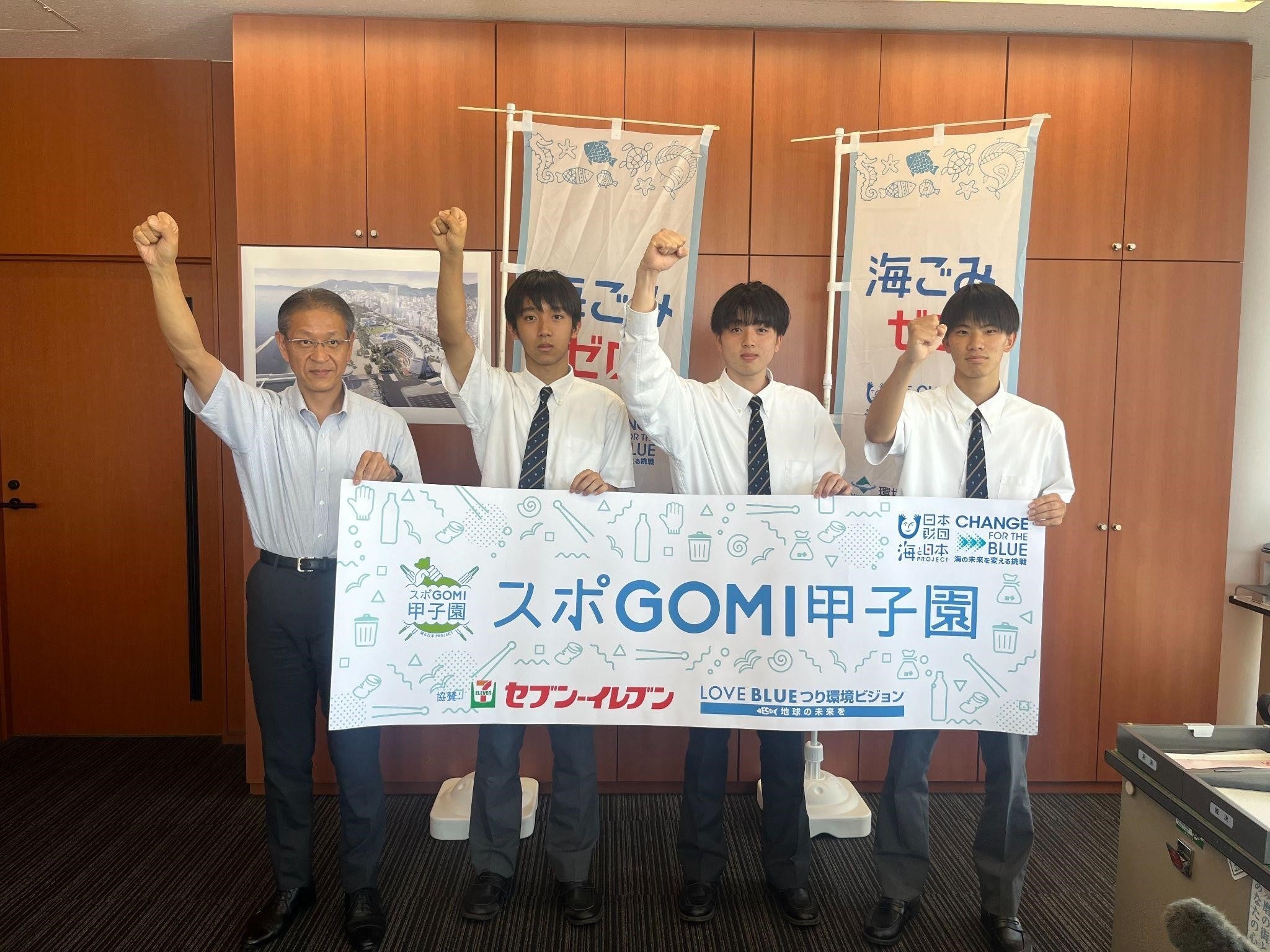 2023年7月15日に行われた『スポGOMI甲子園2023・兵庫県大会』で優勝した須磨学園高等学校(兵庫県県神戸市、校長:堀井雅幸)在校生3人組の「MG4」が、大会での成果を報告するため須磨区長・熊谷保徳を表敬訪問しました。