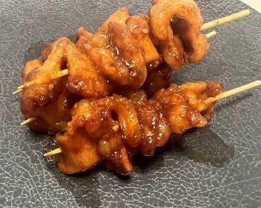 豚のホルモンを熟練の職人が秘伝の味噌に漬け込み、焼き上げたホルモン串。どこか懐かしい味わいです。