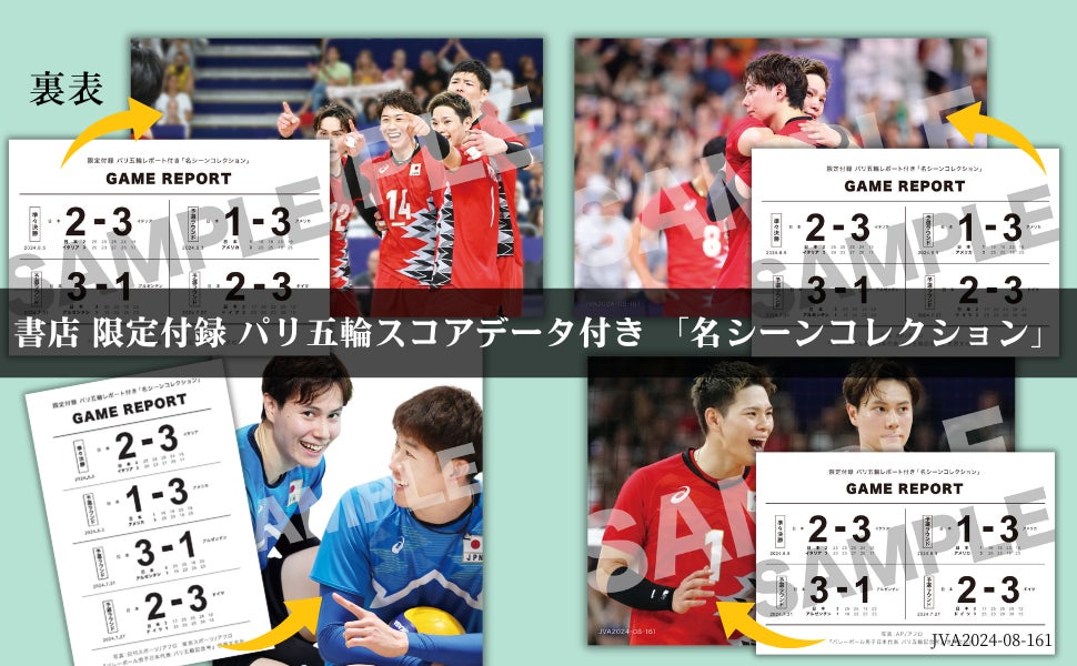 大垣書店、喜久屋書店、紀伊國屋書店、三省堂書店、サンミュージック、丸善ジュンク堂書店、ブックファースト、有隣堂の各店舗にて『バレーボール男子日本代表 パリ五輪記念号』を購入された方、1冊につき「限定付録 パリ五輪レポート付き ”名シーンコレクション”」1枚がついてきます。