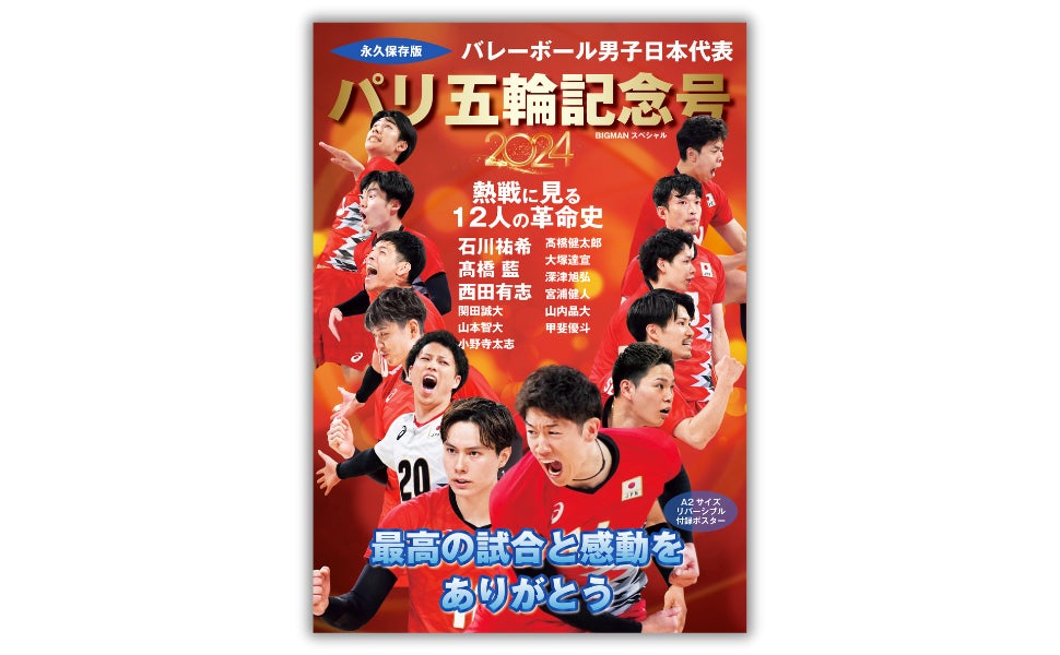 世界文化社は、バレーボール男子日本代表の激戦のパリ五輪の模様を、豊富なビジュアルと現地レポート、予選から準々決勝までのハイライトシーンを収録した、完全版『バレーボール男子日本代表 パリ五輪記念号』(A2サイズ リバーシブルポスターつき)を8月29日(木)に発売します。