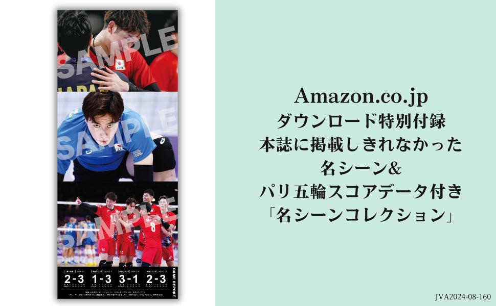 Amazon.co.jp にて、『バレーボール男子日本代表 パリ五輪記念号』をご購入された方、1冊につき「ダウンロード特別付録 パリ五輪レポート付き “名シーンコレクション”」データがついてきます。