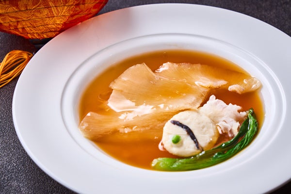 鶏肉、魚の浮袋、金華ハムらを6時間丁寧に蒸しあげてとった一番出汁のみを使用し、優しく深い味わいのスープに仕上げました。