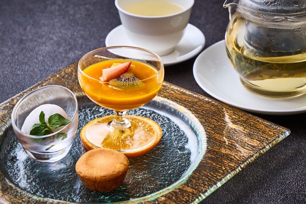 「凱華樓」のレシピを基にした「パイナップルケーキ」と、台湾の定番スイーツ「マンゴープリン」、食後にサッパリとする「杏仁アイスクリーム」の3種類が盛り合わせになった、贅沢なデザートプレートです。「パイナップルケーキ」は「凱華樓」の味を再現し、形やサイズはコース料理に合うようにアレンジを加えました。蜜やフルーツのような芳醇な香りと、深みがある味わいと甘みの台湾茶「東方美人」と一緒にお楽しみください。