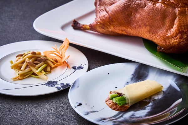 丸々1羽、皮も肉部分もお召し上がりいただける北京ダックは、1週間前までの予約限定でご用意いたします。肉付きの北京ダックを楽しめるのはこの期間だけです。こだわりの甜面醤と一緒にご賞味ください。