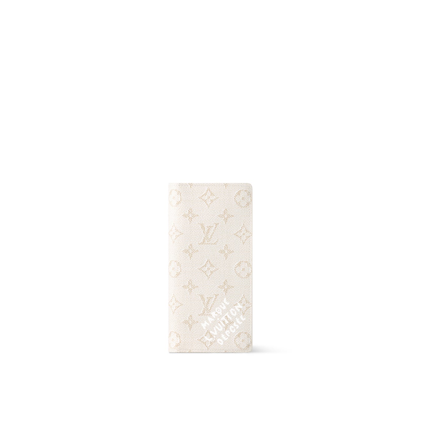 プリント入りのレザーライニングを組み合わせた「ポルトフォイユ·ブラザ」。前面下部にはファレル·ウィリアムスのお気に入りである「Marque L. Vuitton Déposée」シグネチャーがあしらわれています。