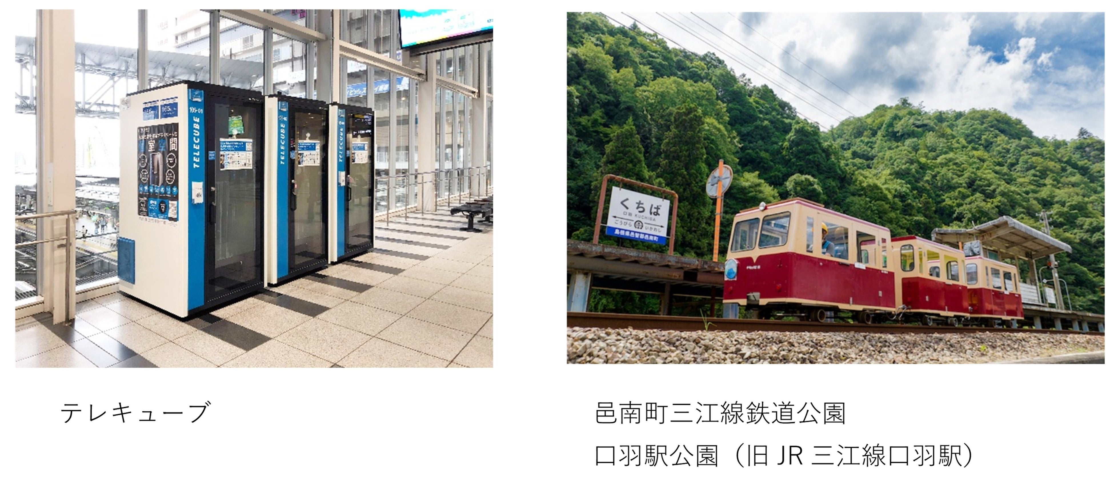 日本全国に多数展開している「STATION WORK」と「テレキューブ」を掲載予定。これにより「Yoyappin(ヨヤッピン)」では、出張時や外出先でのリモートワークというビジネスパーソンの利用需要に対応します。また、JR西日本という特色を活かし、鉄道関連として廃線当時のままの姿で保存している「邑南町三江線鉄道公園 口羽駅公園(旧JR三江線口羽駅) 」や、万博で好評を博し現在も人気継続中の「Dothealthカラダ測定サービス」の予約開始も予定しています。