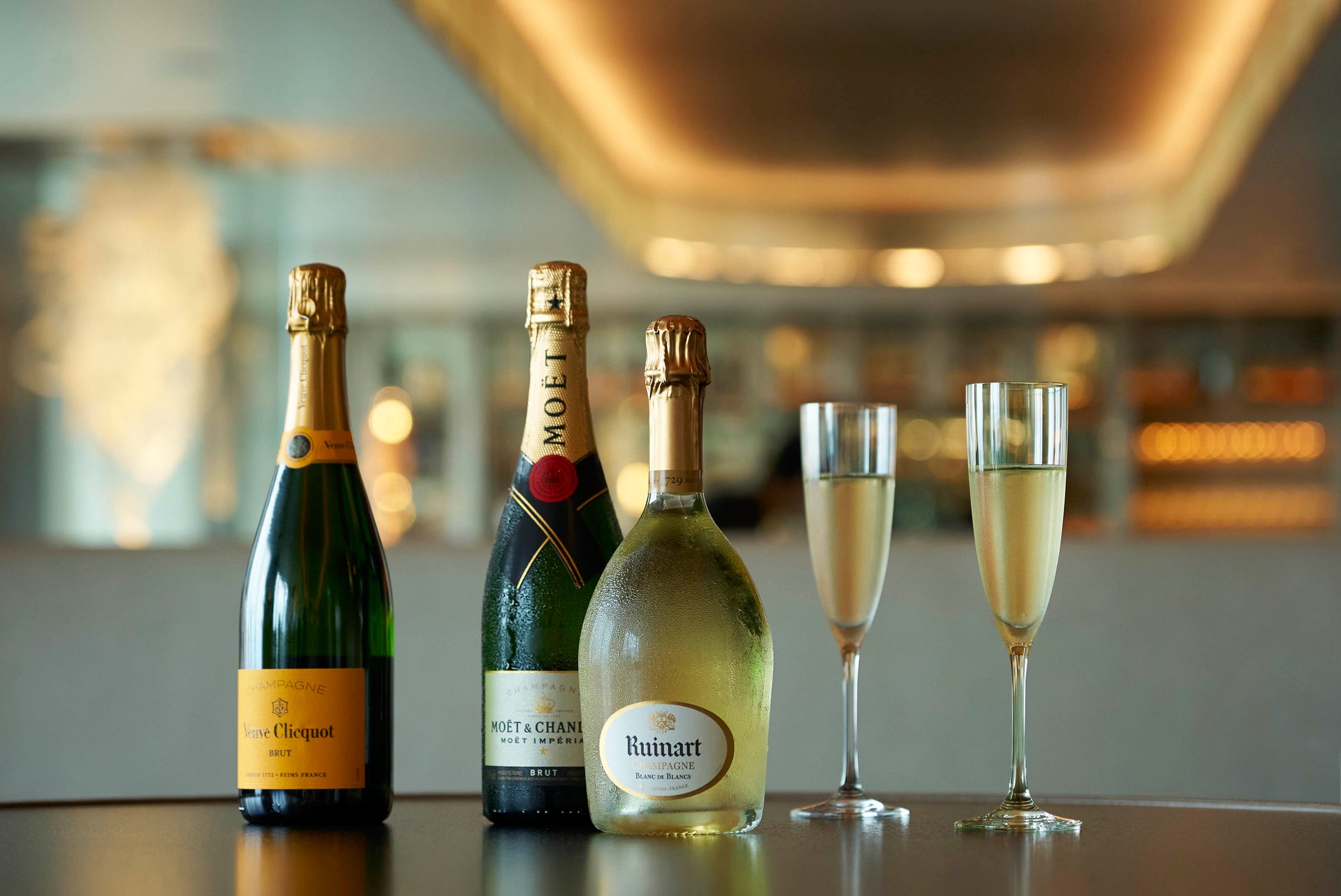 シャンパーニュは、シャルドネ100%のエレガントな「ルイナール ブラン・ド・ブラン」、フルーティーでバランスに優れた味わいの「ヴーヴ・クリコ ポンサルダン イエロー ラベル ブリュット」、洗練された泡立ちと芳醇な香りが特長の「モエ・エ・シャンドン モエ・アンペリアル」の3種類をご用意。シャンパーニュに加えてカービングサービスで切りたてをご提供する「ハモンセラーノ グランレゼルバ」はお好きなだけお召し上がりいただけます。