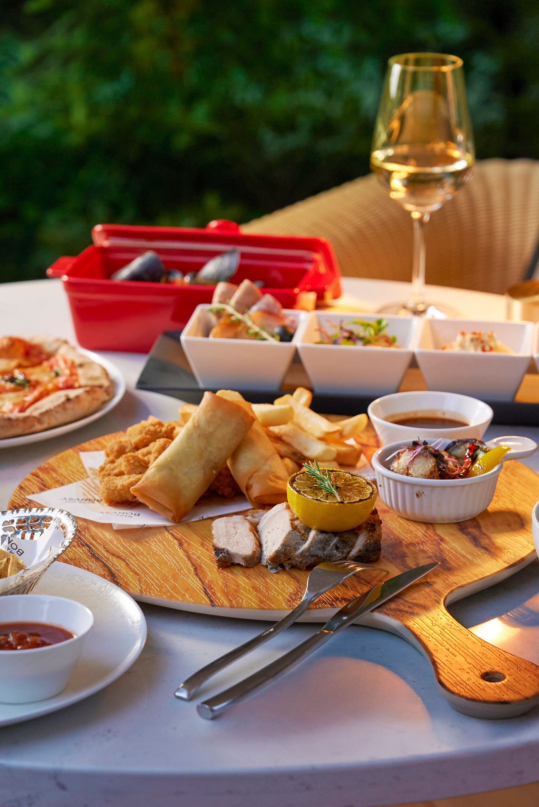 ダイナミックに盛り付けた「グリルポーク BBQソース」や焼きたてのピザをはじめ、「アクアパッツァ」などのお料理に加え、オプションメニューもバラエティ豊かにご用意。きめ細やかな霜降りが特長の「恵比寿牛 サーロイン」、豊かな甘みと弾力ある食感が贅沢な「活けロブスター」や「活け鮑」のグリルなど、いずれもこのプランだけに特別にご用意いたします。