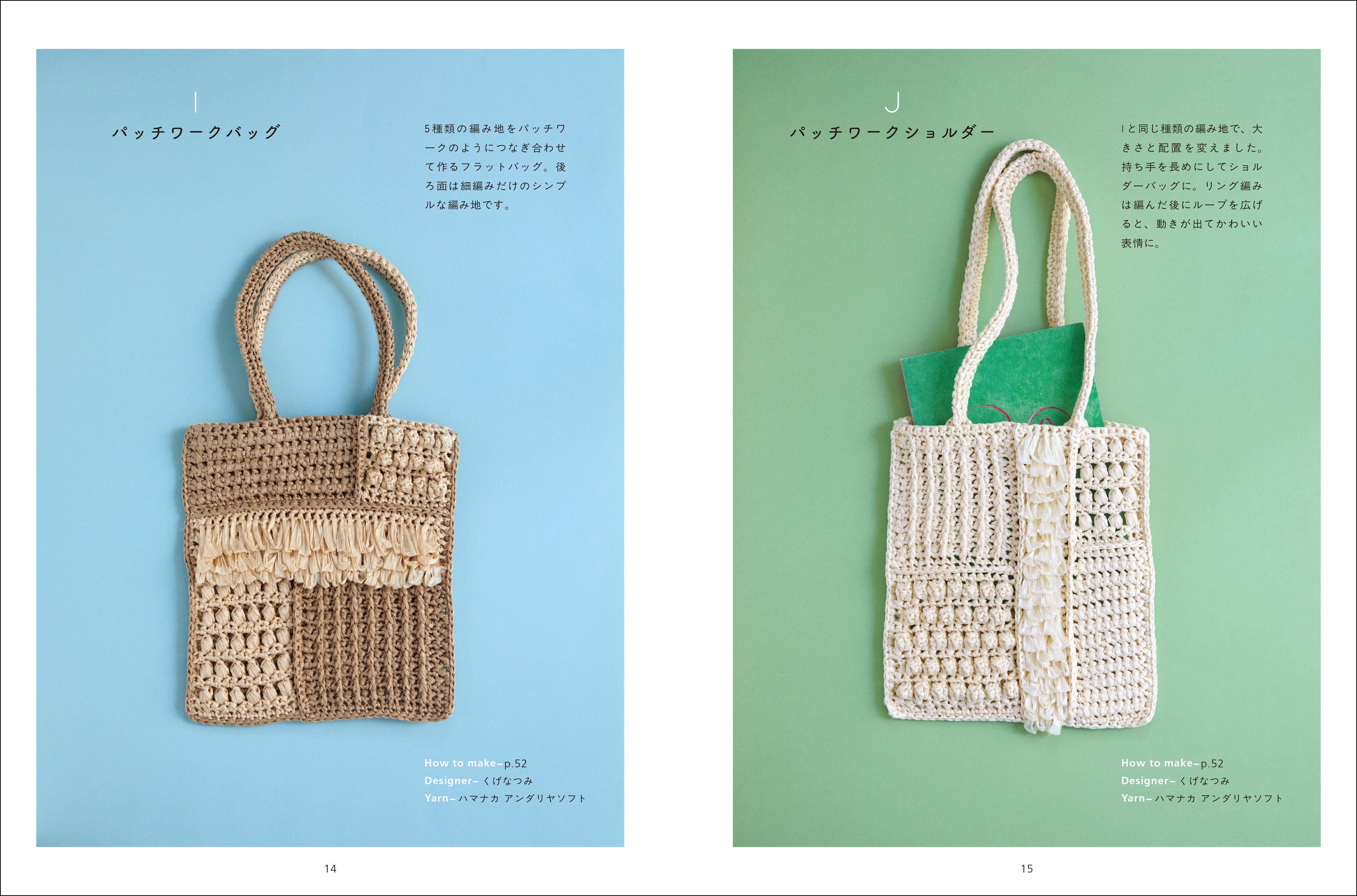 人気の「エコアンダリヤ」の新製品。よりソフトに編みやすい糸で編む夏向きの小物レシピ。