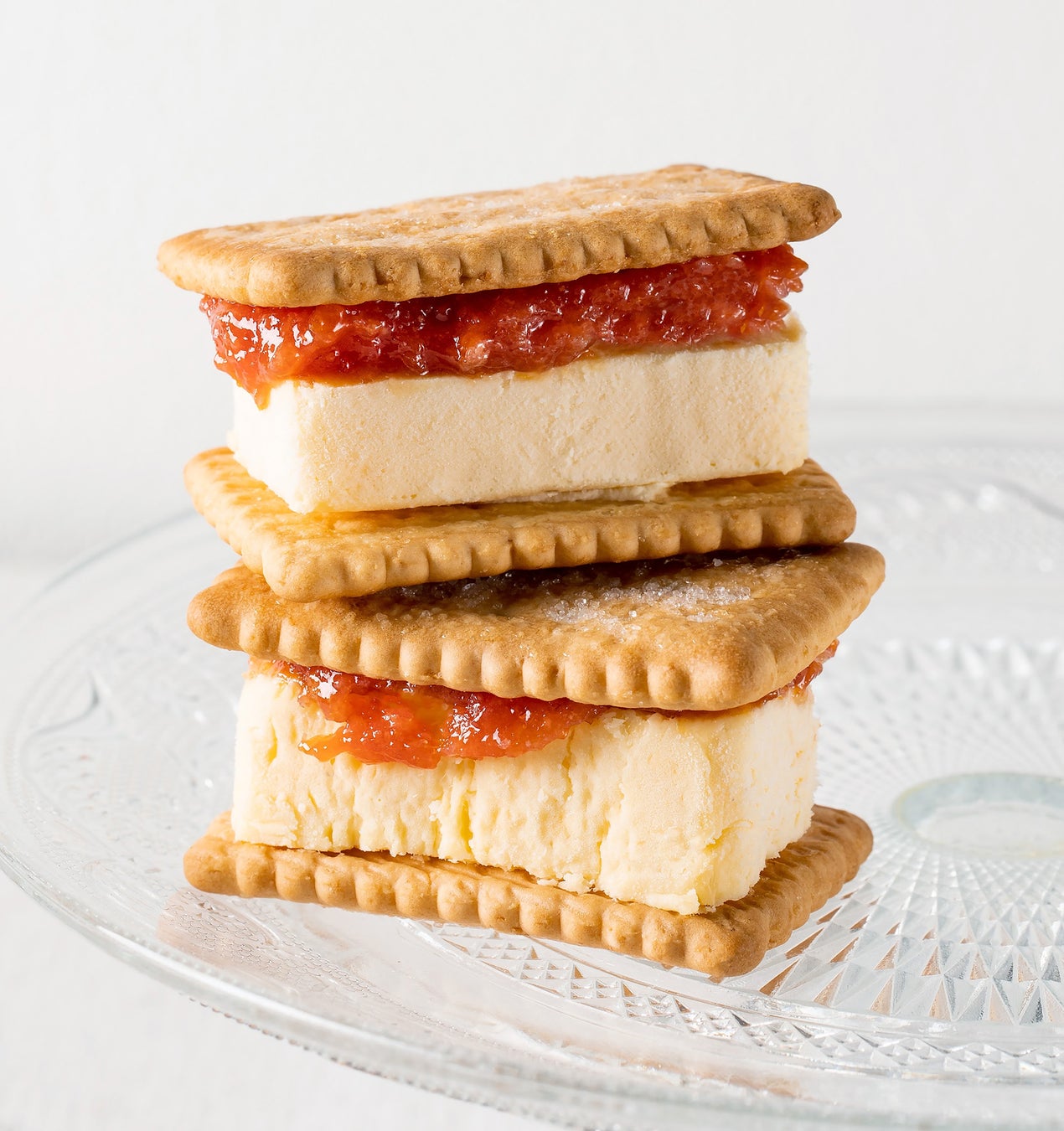 なめらかでリッチな口溶けの西京味噌仕立てのチーズテリーヌにブラッドオレンジを混ぜ込みサンドしました。