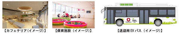 さらに当施設は、テナント企業の従業員向けに保育施設や、東武東上線「坂戸駅」と当施設を繋ぐ送迎用EVバスを導入(※4)するとともに、免震システムや非常用自家発電機、蓄電池を設置するなど、BCPにも対応した防災配慮設計を施しています。