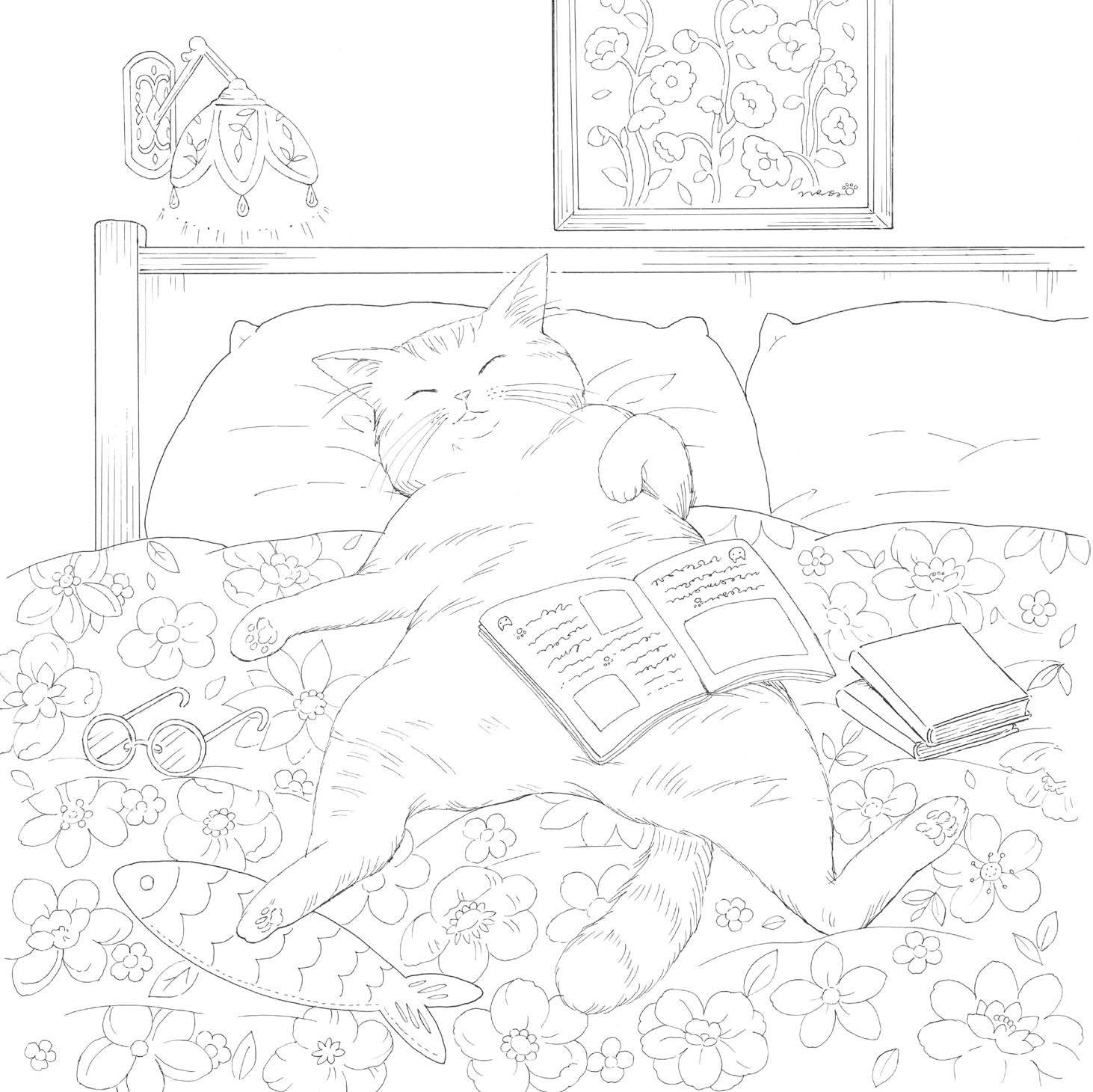 カワイイ猫の表情と美しい花に満ち溢れた究極の癒しのぬり絵ブック。