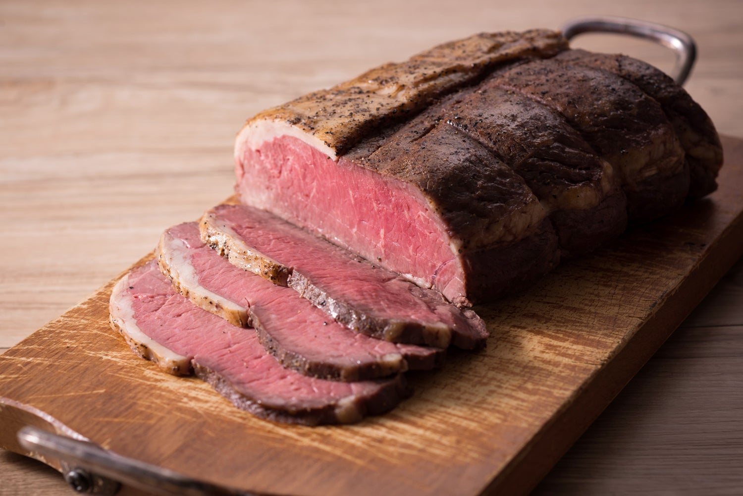 時間を掛けて丁寧に焼き上げたホテル自慢のやわらかな国産牛ローストビーフです。和風ソースと西洋ワサビ、ポテトのグラタンを添えてご用意。1枚よりお買い求めいただけます。