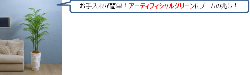 イエナカニーズの高まりにより、ランニングコストも手間も掛からず生花のように楽しめる“いいとこ取り”な、アーティフィシャルグリーンが流行りつつある!