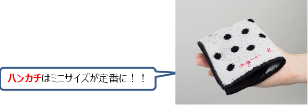 コロナ以前は“バッグに入れて持ち歩く”スタイルが主流だったタオルハンカチ。コロナ禍を経てハンカチの出番が増えたことにより、ポケットに入れられるミニハンカチがじわじわと浸透中!バッグのコンパクト化にも対応。