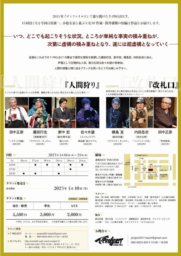 筒井康隆ワールドを豪華ベテラン俳優陣でお届け T-PROJECT『人間狩り』+『改札口』上演決定 カンフェティでチケット発売