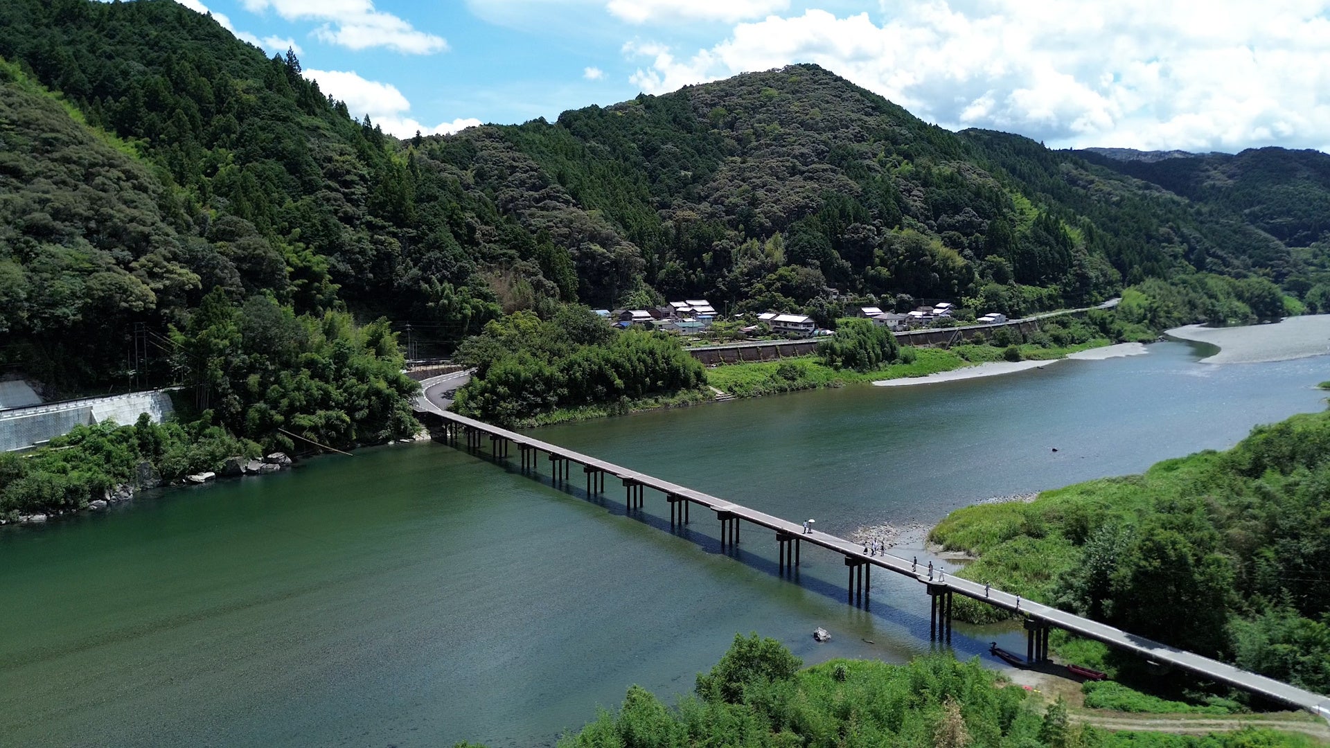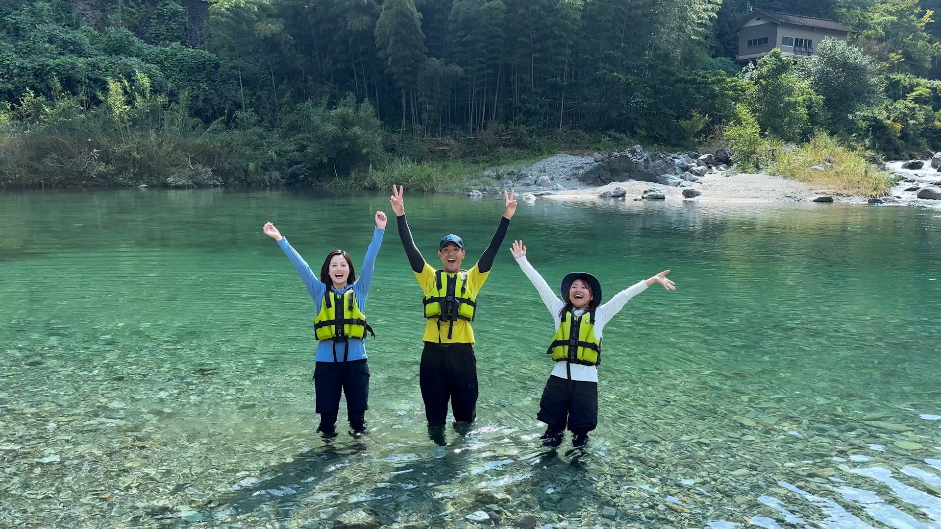 坂本龍馬像が立つ桂浜の海岸沿い走り、景色は海から山へ。途中、観光名所でもある名越屋沈下橋を渡りたどり着いた先は、奇跡の清流と称される仁淀川!