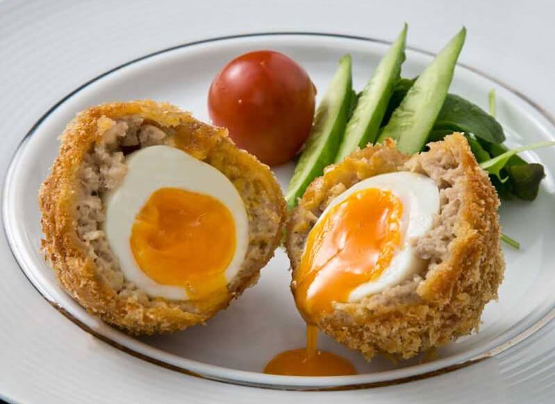 鹿児島黒豚のサクサクメンチを割ると、中から半熟卵がとろ~りと流れ出てきます。