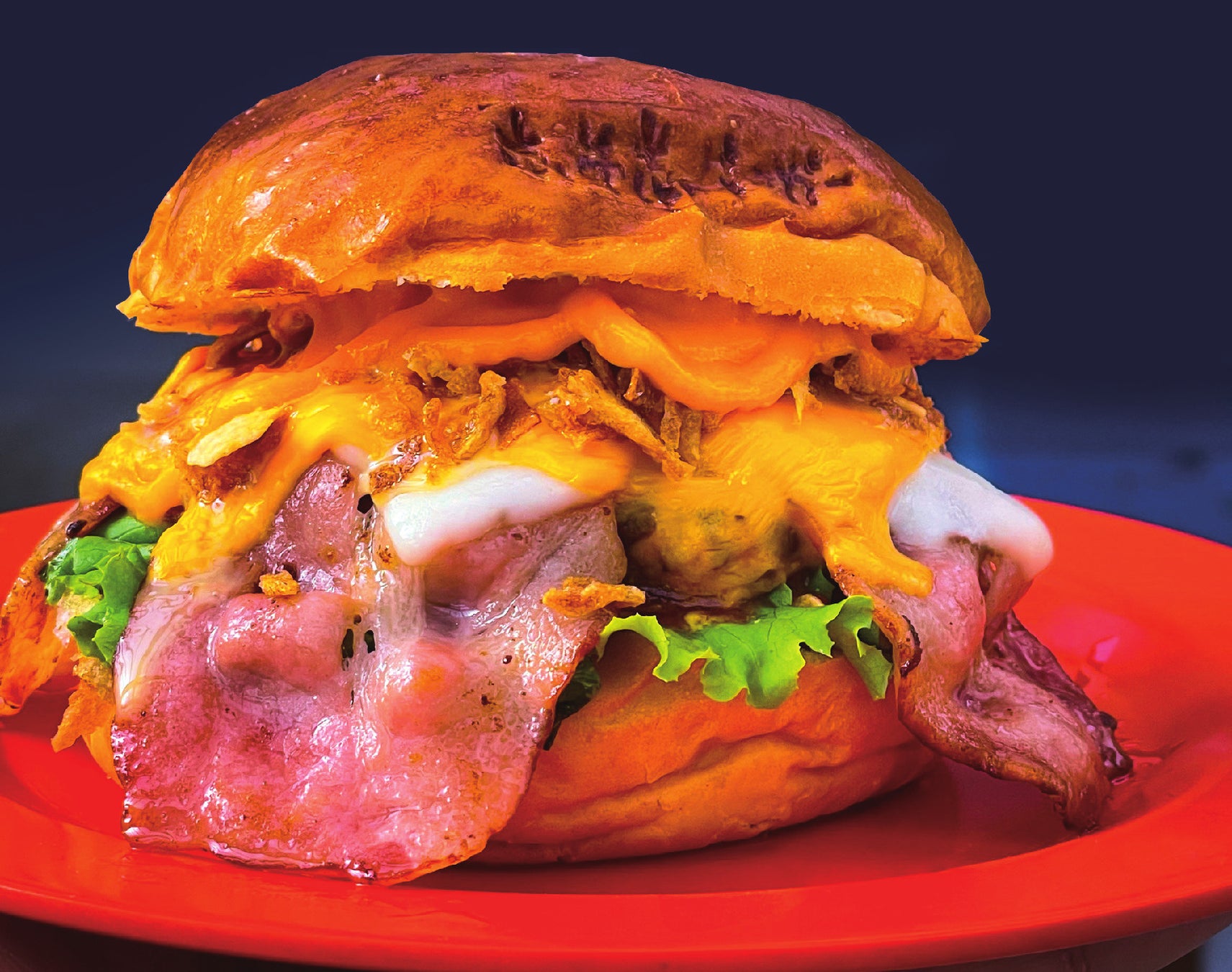 ▲【志布志バーガー】黒毛和牛ベーコンチーズバーガー(1個)税込1,836円